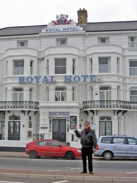 PETER WESTON: The four of us - Rog in the front seat, Darroll [Pardoe] and Charlie [Winstone] in the rear - set off on the long drive to the 1966 convention, over 180 miles due East on winding country roads. We stopped for a quick Chinese meal at Peterborough; two years earlier, I had thought that was remote. Now we were going nearly twice as far, through picturesque Wisbech, home of Ken Slater's "Fantast" bookshop, across sugar-beet fields and flat, empty fenlands that seemed to go on forever. It was four o'clock before we eventually checked in at the Royal Hotel on the seafront at Yarmouth. We were among the first to arrive, and Rog and I had a beer in the bar, where we met Con Turner and Jim Marshall, a genial couple of old fans from the North-East who had recently published their fanzine GESTALT, with a newcomer, Harry Bell, who had come down with them. It was a warm afternoon and we decided to go for a stroll along the promenade, but we didn't get far because only a few hundred yards down the beach was a fun fair, which Rog insisted upon investigating. It had been ages since I had been to a fair, so naturally we had candyfloss all round, and then Rog suggested we went onto the Waltzers, his favourite. The next ten minutes had the quality of a nightmare as I clung to the safety bar in a low-slung contraption which rumbled in tight little epicycles while the wooden deck thundered around and around and up and down, all to the bellowed tune of "Zambezi" and the rattle of mismatched castors. "Roll, pitch, and yaw," I thought grimly. "It might be good training for the space programme, but please God, just let me get out of this alive!" Then a tattooed demon from out of Hell itself appeared and gave our car a couple of hard pushes, just to make sure it was travelling at the very limit of its design capabilities. "I'm going to be sick," I groaned, as my stomach signalled it was about to expel its recent input of sweet-and-sour pork, beer and candyfloss. The fiend from Hell thought this was absolutely hilarious and gave us an extra-hard shove before going on to torment the lost souls in the next car. I knew I should have stuck to the dodgems! We staggered off and I thought Jim and Con looked a bit green, too, but not Rog Peyton, he of the cast-iron stomach, who immediately went onto an even more evil device, a sort of giant centrifuge with long metal arms that gradually lifted so they were vertical. From a safe distance on blessedly unmoving ground we watched in horrified fascination as Rog's little aluminium capsule rocketed straight down at about 6Gs, his head just visible through the mesh cover. Nothing bothers that man! After that, I hardly ventured out of the hotel all weekend.