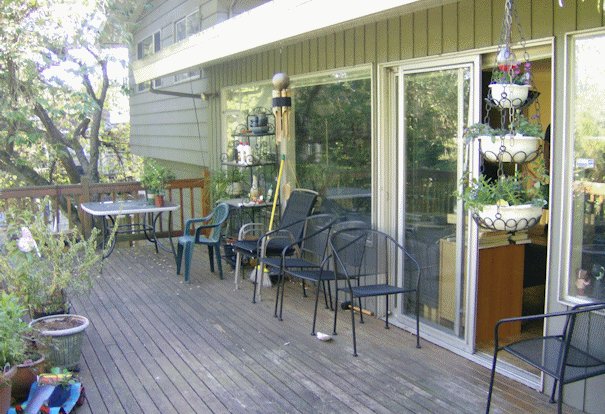 When Andy eventually arose, he cooked us all bacon'n'eggs, though he had some difficulty eating it himself thanks to medication he was taking. "I love the open layout of American houses," I said. "Yeah, this is a really good party house," said Andy, "though that time we had over a hundred people here I did fear for the outside deck. If that had collapsed...." Some years ago, in a house about a hundred and fifty yards from my own, they threw a party and crowded in more people on the upper floor than it could take. Several were killed when it gave way, so I understood Andy's concern.