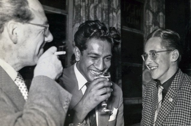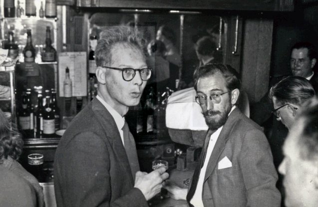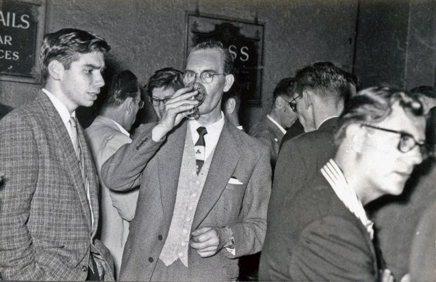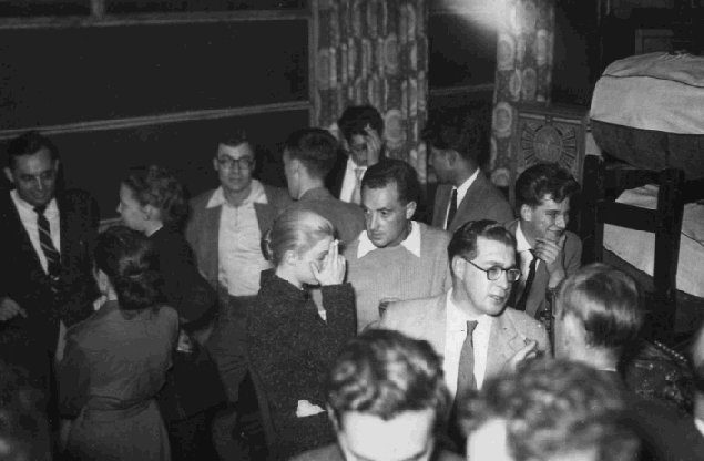 The bar. Sam Moskowitz far left, Bill Temple in bright suit