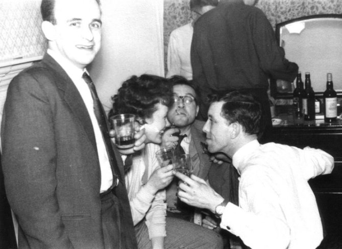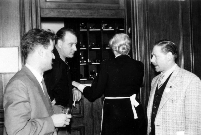 George Locke, Sandra Hall, Peter West and Pete Taylor gathering at London's