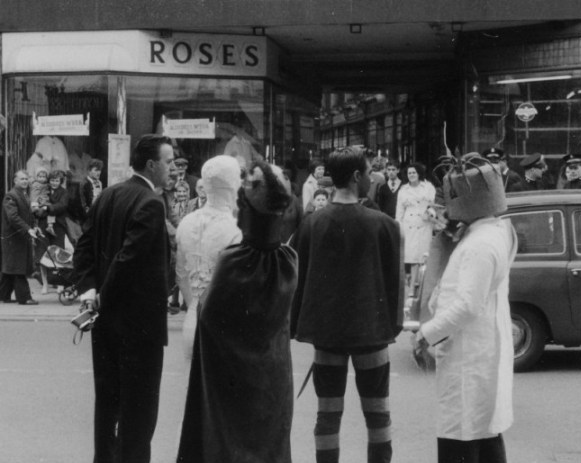 That's Charles Partington in the striped costume, probably Harry Nedler in the bughead costume with long robe and claw hand, and either Tom Holt or Tony Edwards as the Mummy. All photos are by Terry Jeeves:
