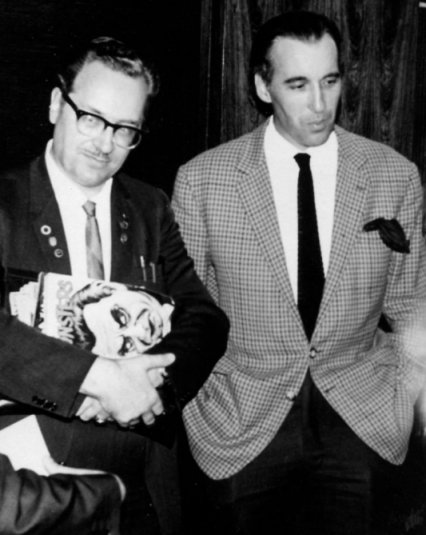 At that time, said Aldiss, the dominant mood was still embodied in the paranoiac stories of the type written by A.E. van Vogt, in which the hero is the victim of a worldwide conspiracy, but in the end he licked the lot of them. Asimov was somewhat similar but his hero would undergo a loss of identity and a loss of memory. He would still go on to lick the lot. Orwell reversed this, although his story was still basically that of van Vogt. Here the hero underwent the loss of identity at the end of the story. Nowadays there are other, perhaps more healthy problems. We have the satire of Vonnegut and the "inner space" of Ballard. The space is objective, said Aldiss, but man is more and more in the centre. These are stories of man reacting upon his environment rather than the environment reacting upon man. Also today, Aldiss continued, we are now in the age of the common spaceman. He parodied a recent earth to satellite conversation in which an astronaut had been talking to his wife. "How are you?" "I'm fine, honey. How are you?'' ''I'm fine, honey, just fine." "And how are the kids?" "They're fine, too." As you see, Aldiss remarked drily, the age of the common spaceman. He had been, he went on, recently looking up a copy of a 1955 Galaxy - which had just arrived in this country - and he quoted a descriptive passage in which stars appear as holes in a black, velvet curtain, commenting that the oratory of ten years ago seems humorous today, “like the works of Henry James - but funny." This makes for better SF, Aldiss said, for we must change with changing conditions. All this, he concluded, was the speech he had prepared, which he had been rehearsing naked in front of a full length mirror. However, he now realised that he was unable to give the speech he really had intended to give, for John Brunner had given it the day before. BRIAN ALDISS (in letter to THEN): While I was making my GoH speech, rear doors opened and a figure entered waving a cable. It was Cy Endfield, celebrated director of Zulu and other movies. The cable was from Joseph E.Levine in Hollywood, guaranteeing Cy $30m if he - and I as scriptwriter - made an SF film called 'Only Tomorrow' before Clarke and Kubrick got their act together an 2001. An exciting moment. We haven't made the film yet. RON BENNETT: TAFF delegate Terry Carr was introduced by Tom Boardman who explained briefly the organisational workings of the Transatlantic Fan Fund. (When recalling this twenty years later, Terry misremembered Forry Ackerman as having been the toastmaster. This being so, I've taken the liberty of substituting Tom's name for Forry's in the section below.) TERRY CARR: