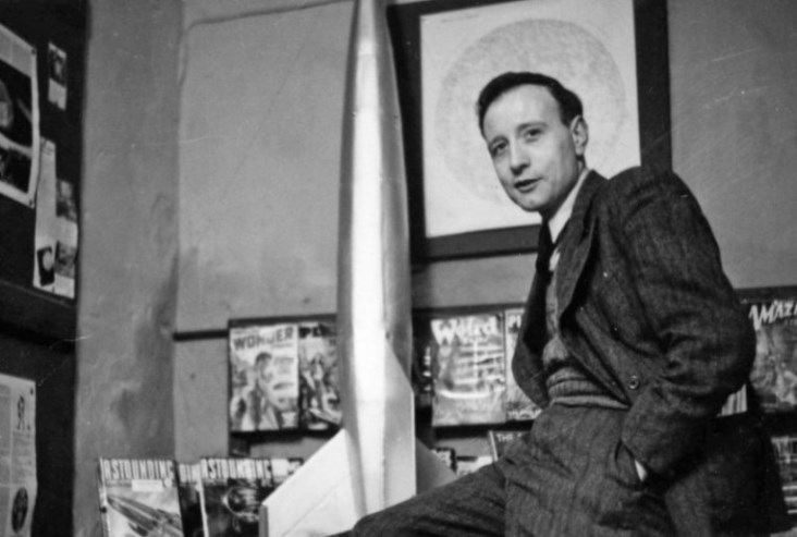 During this week [February 10th] the Gaumont were showing the then current The Day The Earth Stood Still. We arranged with the manager to display a number of Science Fiction books and covers in the Foyer, and in return we advertised the film at our premises. We had the walls of the Space Dive covered with S-F magazines, for which display we are indebted to various members who placed parts of their extensive collections at the Society's disposal. In all there must have been about one thousand magazines gracing the now clean, walls. In addition to this our Treasurer, Norman, constructed a model of a spaceship which stood 5' 4" in height, this, placed in a lunar setting contrived by another of our members looked extremely effective. Several other members volunteered to stand outside the Gaumont and hand out a leaflet explaining the Society's activities and