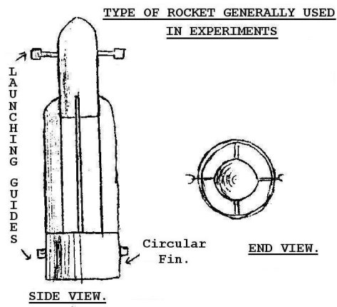 During the months of September to December 1936 some 30 to 40 experimental rockets were tested, One big disadgantage of the use of fins was the large area of resistance, compared with the body of the rocket, against any opposing wind. If fired on a fairly windy day, the rockets would deviate from a vertical course and turn into the wind. One line of future research will be the study of methods to stablise a rocket in flight without the aid of fins.