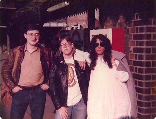 This was the first of their meetings I'd been to in three years and so we had some difficulty finding their new pub, the Royal Oak in New Malden. When we did, those present included the Maules, Joseph & Judith, Brian Smith, and George Bondar. After a mere two pints Lucy was pissed again. What is it with these American women who can't hold their drink? At the end of the evening, we departed with Joseph and Judith, Avedon and I leaving them at Victoria and boarded the tube to continue our journey back to Upton Park. Avedon fell into a doze on my shoulder, which was fortunate as it hid the CND stickers we were wearing from the pair of thugs who sat down opposite us. Their own NF badges identified them as members of the National Front, a fascist group. They began making lewd comments about most of the women in the carriage (but not Avedon), and took particular exception to one guy across the way from us ("Whatya think you're lookin' at, sunshine?") I whispered in Avedon's ear that we should get off next stop and move up a carriage. We did, and so did the guy being threatened, along with his girlfriend. Saturday 9th June - from fanzine report Well, on June the 9th I did it again. Once again I found myself on a CND march, this time in the company of Avedon Carol and Martin Tudor. We started off by meeting outside FORBIDDEN PLANET and originally there were supposed to be four of us...only Lucy "I'll march by myself if no-one else turns up" Huntzinger didn't show. Had some wimpy excuse about having ate too much meat, smoked two much dope, drunk too much (about two pints), and overslept.