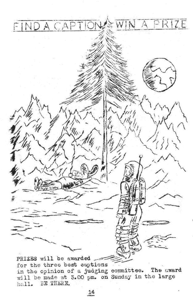 The Committee would also like to extend their sincere greetings to our friends end guests from overseas, from France, Belgium, Holland, Sweden, to Bob Guy of the Australian 'Sydney Futurians', and to our American guests, who include BEA MAHAFFEY, co-editor OTHER WORLDS.