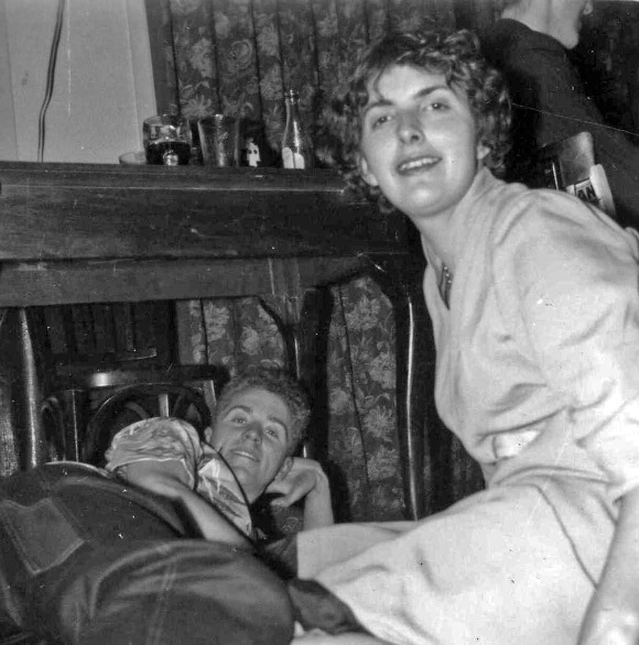 ALLEN: Downstairs fen were gathering in various places waiting for one of the big rooms, which the manager said we could have until seven the next morning, to be opened. The manager was also going around telling folk that if they were not a resident of the hotel then they could not stay, but of course nobody present was a non-resident so everything was alright.....but I still wonder why it was that he picked on me to ask what room I was staying in out of the couple of dozen fen that were present when he made this announcement. The party-room was opened up at ten and it was not long before it was full, so full that I couldn't find a place to sit except for the floor which was undoubtedly the best place to be - I wouldn't have far to fall! A bar had been erected at one end of the room and they were doing-a roaring trade. Shirley (Shamey) Marriott said she was going to get me drunk if it was the last thing she did and went off to the bar to get some booze. When she returned we sat at a table along with Paul Hammett, Meredith Chatterton, Ethel Lindsay, Ron Buckmaster and Pete Taylor.
