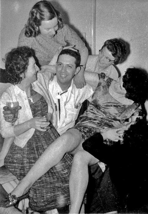 A goodly mob of us went out for lunch at the Moulin Rouge. We went downstairs and somehow or other I got into a conversation with the owner who looked to be Italian, He said he used to live in the U.S. until he got deported following his sentence. Been in England ever since. I asked him what gang he used to be with and what he got sent up for. It was for bootlegging and he used to be with Capone's mob, he said. I kept telling him what a nice set up he had for a casino down in this cellar, and asking him if he knew the Detroit Purple Gang and mentioned names of some of the gangsters who'd been in an article in LIFE some time back. When we left the restaurant, Carnell looked at me with awe and asked me how I knew so much about the gangsters in the U.S. "Next time you're in Cincinnati, Ted, let us take you to the hot spots in Northern Kentucky." I said.