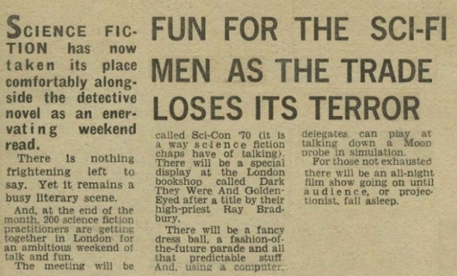 SCI-CON - THE 1970 EASTERCONSCI-CON the 1970 UK National Science Fiction Convention took place over the weekend of Friday, 27th March to Monday, 30th March. It was held in London at the Royal Hotel, Russell Square (located a hundred yards or so from Russell Square Underground station). It's widely regarded as being the worst Eastercon ever held.The Royal Hotel was also the venue for the 1951 and 1952 UK national conventions. It was demolished soon after SCI-CON and on the site now stands the Royal National Hotel, currently (2020) the venue for the bi-monthly comic mart and national collectors market place.