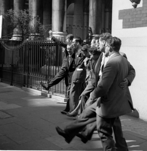 A goodly mob of us went out for lunch at the Moulin Rouge. We went downstairs and somehow or other I got into a conversation with the owner who looked to be Italian, He said he used to live in the U.S. until he got deported following his sentence. Been in England ever since. I asked him what gang he used to be with and what he got sent up for. It was for bootlegging and he used to be with Capone's mob, he said. I kept telling him what a nice set up he had for a casino down in this cellar, and asking him if he knew the Detroit Purple Gang and mentioned names of some of the gangsters who'd been in an article in LIFE some time back. When we left the restaurant, Carnell looked at me with awe and asked me how I knew so much about the gangsters in the U.S. "Next time you're in Cincinnati, Ted, let us take you to the hot spots in Northern Kentucky." I said.