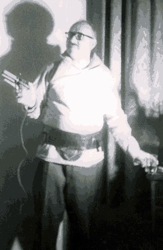 Walt Willis, who'd been sitting near the back with Chuch Harris, had a somewhat different theory, as I discovered later when he showed me the notebook in which he'd been exchanging written comments with Chuch, who's deaf. Chuch had written, 'What's happening? Only a few people seem to be laughing,' and Walt had replied, 'Terry's making puns that are too sophisticated for them.' I wish Walt had been right. Mentioning Chuch Harris reminds me of what happened when I first met him a day or two earlier. We were on an elevator, just getting off at some floor, and next to the elevator was an automatic shoeshine machine. Chuch said, 'Look -- an electric neofan!' RON BENNETT: