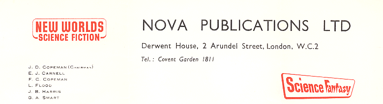 3. The 1952 Fantasy Book Centre catalogue (see below) reports that the shop has moved up up the road, which meant the Nova publications office had too. On the new letterhead, Walter Gillings has gone.