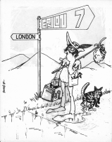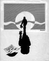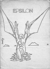 Epsilon (1976-1985) was my primary fanzine during my most active period in fandom and ran for eighteen issues. The first issue was litho-printed and this was expensive - more expensive than I could really afford, in fact. Which is why the second, though pasted up to be lithoed, ended up being surreptitiously photocopied at my then place of work. Unfortunately, early photocopiers would not copy large areas of black, so as a way of getting around this problem the cover as it appeared was a tracing of the one I'd prepared. This is the thumbnail as it appears here but clicking on the link for that issue will show you the artwork as it was intended to be seen. From the third issue onwards Epsilon was mimeographed - first by others then, when I got my own Gestetner, by me - but the cover of that third issue was a litho wraparound. With the fourth issue, Epsilon switched from A4 to quarto, the size it would remain thereafter. The first three covers feature the alien birdmen I'd intended to be my recurring motif, but by the fourth issue Star Wars had come out and the cover for that and the following issue were inspired by that movie, just as that of the sixth was inspired by 'Saturday Night Fever'. From issue seven onwards I decided to make the title and issue number an integral part of the cover art (except on issue nine), and then had to come up with different ways of accomplishing this. The covers for the seventh and eighth issues were inspired by the art in Jim Steranko's Graphic Novel 'Chandler', with the heavy blacks necessitating a return to litho covers for those issues. The birdman made a final appearance on the cover of issue eight as a sort of Maltese Falcon stand-in. Five of the next six issues were collaborations. They're discussed under cover collaborations (article to be added later). The final two covers were by me and involved more use of a ruler than actual drawing devoid as they were of human figures. Larger version of all the covers can be found using the links beneath the thumbnails.