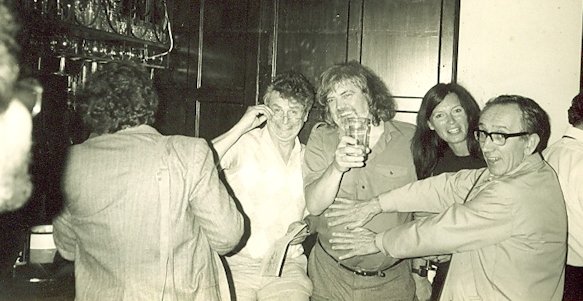 Following a pleasant pub lunch we headed back to East London. A brief stop at Greenleaf Road was followed by a bus and Ferry ride to South Woolwich, where a smiling Arthur Thomson was waiting to drive us to Welling and the KTF (Kent TruFandom) meeting in Vince Clarke's house. Vince and Ted Tubb were there when we arrived, with Johns Jarrold and Harvey joining us later. Ted was unwise enough to begin expounding his opinions on women and so got into a heated argument with Avedon about feminism.