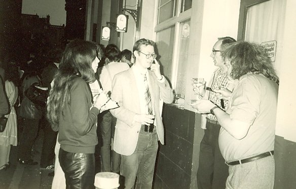 An all-day party at 7A Lawrence Road, and the biggest there in years. Down from Newcastle were Kev & Sue Williams, Harry Bell and Mike Hamilton, while Martin Tudor had travelled from Birmingham, and Alun Harries from Wales. In the early stages of the party I noticed there were more women than men present - very unusual for a fannish party - but when I pointed this out I was met with some derision, most of it from Chris Evans.