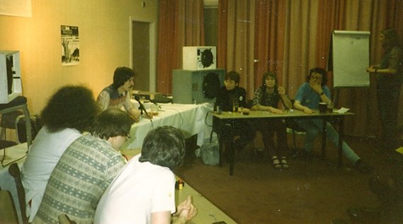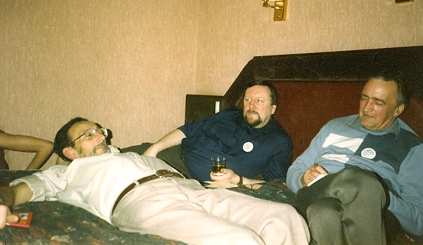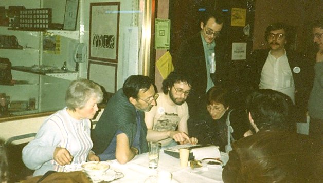 When we went back to Lawrence Road most everyone was hoping things would develop as they had when we'd said goodbye to Tom Weber, but unfortunately they didn't. Chemistry, I suppose. Linda Pickersgill asked me to join her Worldcon fanroom team for Brighton in 1987. I agreed. I ended up staying the night, not wanting to miss anything, and got no sleep thanks to Paul Kincaid & Maureen Porter - who were kipping in the book room - hogging all the available spare bedding. And it was cold!
