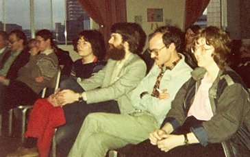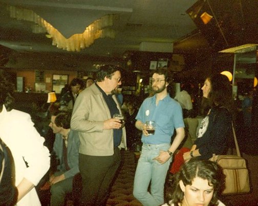 Well, it's certainly been a good time far some hyper-active fannish socialising of late. Even before P&TNH turned up, a week or so earlier, Notkin and Whitmore were in town, but since they got here things have hotted up. The most notable recent example was a party at the Pickersgills' two days ago where things got a little rowdy and...for reasons I still don't entirely comprehend... a gathering of some of London fandoms leading lights spontaneously burst into song. Unfortunately (for the image of London fandom, at any rate) Teresa had quietly turned on her small tape recorder and she now has a perfect recording of us singing, of all things, Elgar's 'Jerusalem'. I have no doubt this will be played back to various US fans and am somewhat mortified by the thought of the chortling it'll inevitably provoke. Poot.