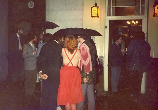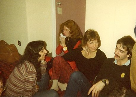 Friday 13th December We bumped into Roz on the tube over to Mike Dickinson & Jackie Gresham's place for a party. Good turnout too, spread across two rooms with the Pickersgills, Pam Wells, Abi Frost, Malcolm Davies, Kate Solomon, Helen Starkey and us mostly hanging out in the front one and Malcolm Edwards, Chris Atkinson, John Clute, M.John Harrison, and others in the rear one, though obviously we mixed. At one point I asked Malcolm if he'd meant what he said in its letter column about the SF book reviews in FANTASY ADVERTISER being the best currently appearing in the UK.