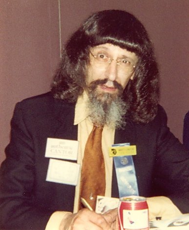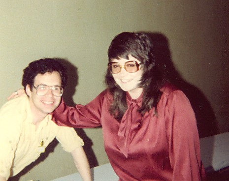 In their room, Marty introduced me to wife Robbie, Larry Carmody, Alina Chu, Lenny Bailes, Ted White and, surprisingly, Chris Atkinson who I'd last seen a few days earlier and half a world away. With the exception of Chris, these people had all previously been only words on paper to me, and I studied them with interest. Ted White was large and bullish, with an incredibly deep voice that Avedon's devastating impression had prepared me for, an infectious laugh, and an engaging sense of humour. In short, he was everything I'd imagined he would be and I took to him immediately. Larry Carmody was quieter than I'd expected, Alina Chu sharper, and Marty Cantor ... well I don't know what I'd expected of Marty Cantor, but whatever it was he came as a total surprise. In print he comes across as somewhat tetchy and obstinate, but in person he's the very model of courtesy and friendliness. For those of you who remember HILL STREET BLUES on TV, Marty somewhat resembled, in both appearance and speech, S.W.A.T. team leader Howard Hunter, only with shoulder-length black hair cut in a page-boy style. Whenever I encountered him during the course of the weekend, his teeth were clamped around the stem of an enormous pipe that looked like a hollowed-out shillelagh, while a shoulder bag containing still more pipes was never far from his side. It was Robbie Cantor, however, who saved my life. After fifteen hours of travel I was in dire need of a drink and, noticing the dismay with which I regarded the few cans of undrinkable American beer lost among the sea of soft-drink provided for their guests, she produced a can of Canadian beer for me. As the cold nectar caressed the sides of my parched throat I thought that, truly, there could be no finer person in the world at that moment than this veritable Florence Nightingale of fandom.