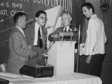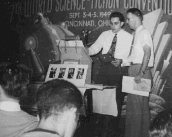 There were various bits of business after this, and the evening's programme concluded with a panel discussion, "Why Science Fiction," moderated by E.E. Evans, and featuring Lloyd Eshbach, Fritz Leiber, Milton Rothman, and Judith Merril.