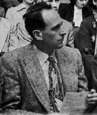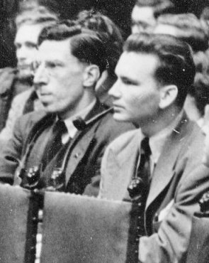 Reflecting that there was always the hope that an atomic war would start in the next hour, I sat and listened to the other speakers, mentally discarding every note I had made as I saw the way the discussion was going. The symposium opened by Lyell Crane, whose interest in international fandom is so intense that it might almost be called vested. He began by informing the audience that he had an absolutely open mind and was willing to change it at any time. With this reassurance, he went on to tell the audience how important they were. Fandom, he said, had built up the prozines of America to their present standard and kept them there. Fandom was directly responsible for aSF and Galaxy, and for the prozines in other countries. But for fandom, etc, etc. Fandom, in the person of one fifth of it gathered in the Convention Hall, received this accolade in pleased if incredulous silence after the cold douche administered by Mr. Hill. Crane then produced copies of each issue of Interim Newsletter, one for each hand, and semaphored them at the audience. Still fanning furiously, he told all out-lying fans who were pure fans and not pros, to get in touch with him. With a final flourish of Interim Newsletter he sat down, having almost accidently revealed one item of interest, that his co-editor Julian May, was a girl. TED CARNELL (in Journal of Science Fiction): Forrest J Ackerman, United States delegate, followed with a highly interesting and entertaining talk on how fandom in the States was coming more and more into its own, and how the executives of radio, TV, films, and publishing houses were turning more and more to fandom for their specialised knowledge in the field. George Gallet, from Paris, editor and journalist, whose name has been known for some 17 years to fandom, next spoke on the increasing interest in France and how he hopes to be publishing at least eight pocketbook novels a year by 1952. Already published in France by him have been 'Murder of the USA' and Hamilton’s 'The Star Kings'. These are being followed by 'Vandals of the Void', and 'Stowaway to Mars'. Gallet stated that the French-reading public prefers the simpler action-packed story to the current American sociological and psychological story. Holland was the next country represented, and Ben Abas, a commercial artist from Haarlem, revealed to the assembly that he and his father were responsible for the publishing of a science-fiction magazine in Holland which ran to four issues before they had to cease publication two years ago. He agreed with Gallet of France that unless one could read English-written magazines there was little chance of the field growing until some enterprising publisher produced translations of the better type of stories. Sigvard Ostlund, representing Sweden, startled the assembly by informing them that a weekly science-fiction magazine had been running in Stockholm for some time, but that the publisher very often mixed detective and western fiction in the issues. Northern Ireland was represented by foremost fan Walter Willis, an enthusiastic amateur publisher from Belfast... (Willis' own view of those who preceded him was a bit different to that of Carnell....) WILLIS: The next speaker was Ackerman, who delivered another of his pleasant and intimate talks. Like everything Forry said, it was listened to with pleasure and interest. To my relief, Carnell then jumped right across the Atlantic and called on Gallet from Paris. Georges brought a sheaf of notes to the microphone, and apologised for reading from them; he couldn't speak English very well. He talked about the French reprints of various American sf books and about his own projected French prozine. Next, Ben Abas brought a sheaf of notes to the microphone and apologized for reading from them, but he couldn't speak English very well. He talked about a Dutch prozine. Next, Sigvard Ostlund brought a sheaf of notes to the microphone and apologized for reading from them, but he couldn't speak English very well. He talked about a Swedish prozine. Carnell then called on me. Having failed to similarise myself through the floor, I toyed desperately with the idea of bringing a sheaf of notes to the microphone apologizing for not reading from them because I couldn't read. But in this probability-world I tottered to the microphone and told the Convention about the recent pocket-book in Gaelic. It didn't take very long, but I salved my conscience with the thought that the proceedings were already behind schedule. No doubt the audience would think I could have made a brilliant oration lasting some hours if it hadn't been for my thoughtfulness and unselfishness. I sat down mid applause, some of which I'm afraid was left over from Carnell's introduction. My best friends tell me the speech was very good, but too short (bless their loyal hearts) and that it came over the PA system with a strong Irish accent. Since I have no trace of any accent at all I find this very difficult to understand, but my English friends (all of whom have atrocious English accents) say I always sound that way to them. The convention rallied, and survived. Speeches by Wendayne Ackerman, Ken Paynter, Lee Jacobs, and Frank Edward Arnold, were listened to attentively by everyone except the last speaker who was still swimming around dazedly in a pool of his own sweat. TED CARNELL (in Journal of Science Fiction): Ken Paynter, recently from Sydney, Australia, was one of two "down under" delegates, and gave a humorous as well as an accurate account of the troubles and trials of Australian fans during the past few years. Ken was originally treasurer of the still-operating Sydney Futurians. His countryman, Alan Shalders, who did not speak during the discussion, is a rocket expert from Woomera on a two-year reciprocal exchange with the British rocket propulsion department. Wendayne Ackerman, USA, then gave a summary of early and recent Germanic excursions into the fantasy field, and was followed by Fr