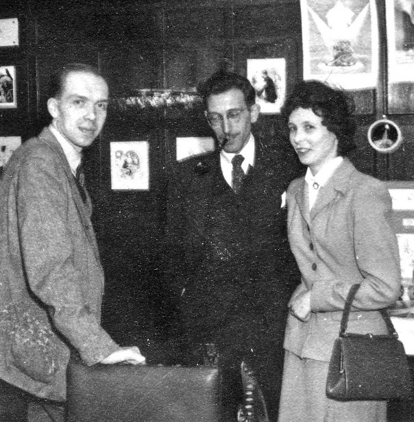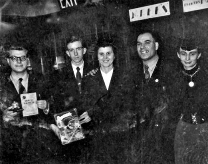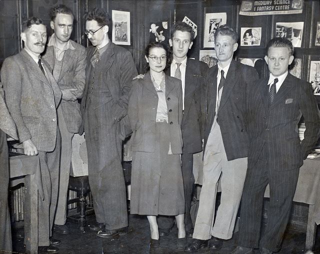 Other out-of-town types present included the old S-F Service, now Milcross, boys, Les Johnson and Frank Milnes, Alan Hunter and his wife from Bournemouth, and several others whose faces were more familiar than their names. [Note: both the S-F Service and Milcross were an integral part of Liverpool fandom in their respective eras - see links below.]