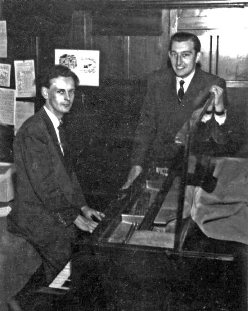 Eventually with promises of meeting on the morrow the late stragglers got lost into side tunnels and I found myself fighting my way onto a train that was, logic told me, going in the right direction. For anyone possessing latent ESP powers I know of no better means of proving the extent of these powers than to travel by London Tube. Feeling somewhat cramped and it being a fine night I decided to get off early and walk back to my digs part way. I feel sure Londoners must have been intrigued at the sight of squads of little men busily running along ahead of me moving Paddington a few miles further West, altering street signs etc. Late that night a tired, footsore and weary looking individual might have been seen staggering along a side street in Paddington breathing prayers that the water had not been turned off in the bathtub - fortunately it hadn't. WILLIS: At about half ten the party broke up and I set off with Vince on the long and complicated journey to his home. Everyone sympathised with me as if I were going to Devil's Island. No wonder - we probably passed it on the way. What a journey! At one time I reflected that at least my descendants would probably get to our destination, provided there was no mutiny among the mutants. It started off like a pageant of transport through the ages. First a tube train, then an ordinary train, then a bus - after that there were probably ferries, dog sleighs, sedan chairs and and mule trains, but I was too bewildered to notice. But after a few years subjective time we arrive, and to my amazement the people are still speaking English. After supper Vince shows me up to my room. Actually it was really his room. I don't know where he slept while I was there, and I never liked to ask in case it was on the mat outside the door: this room, you see, houses The Collection. It consists of a bed entirely surrounded by science fiction. The walls are concealed by shelves containing virtually complete files of several prozines - though not of ASF, the April 1943 issue being absent. I verified this carefully before I untied Vince and allowed him to show me the rest of the Collection. About 3am the more interesting items were exhausted and we went to bed likewise.