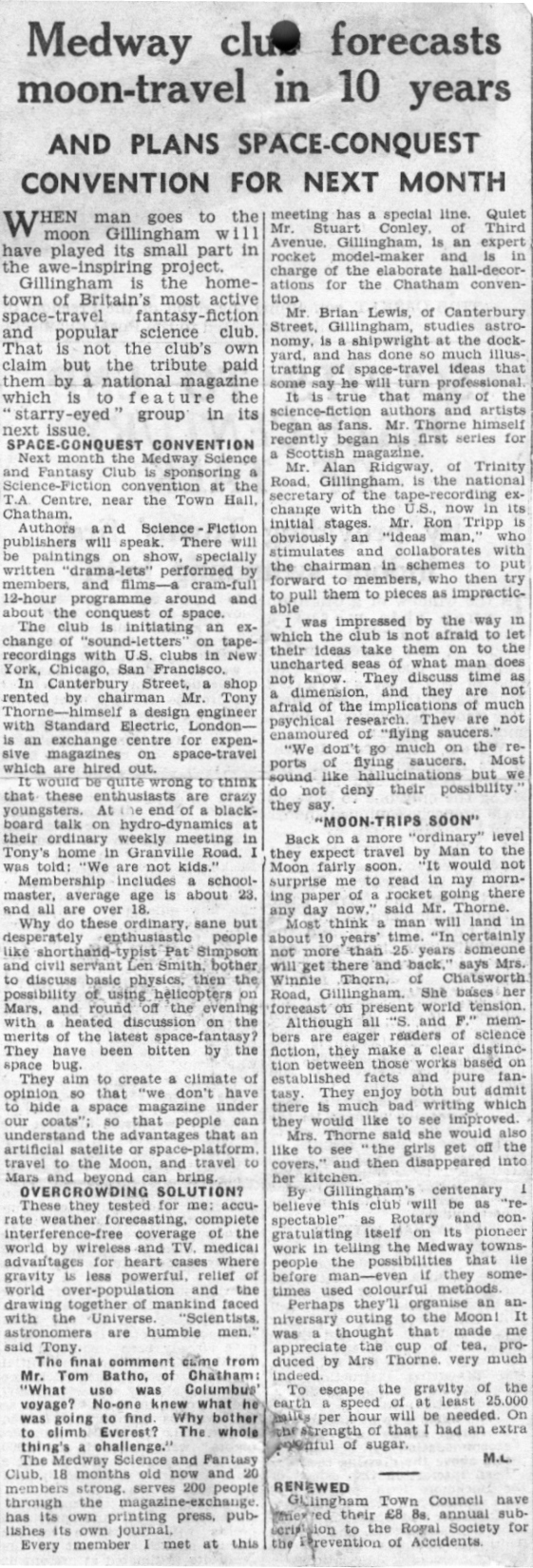 forming the Medway Science Fiction Fan Club and wanted all fans in the Kent area to get