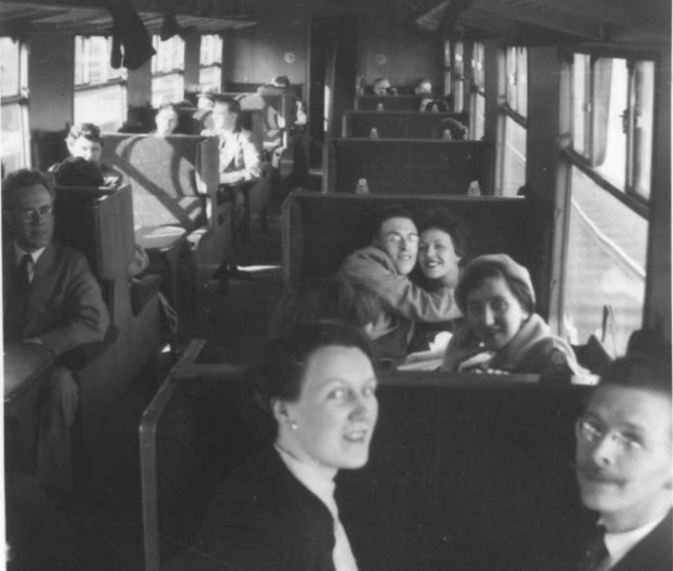 Fans travelling to Liverpool, Manchester, and Glasgow seem to have caught the same train out of Kettering. Norman Shorrock took half a dozen photos of them, on the platform and the train, including the two below. The latter is interesting given that Frances Evans later left husband Cyril and married Brian Varley.