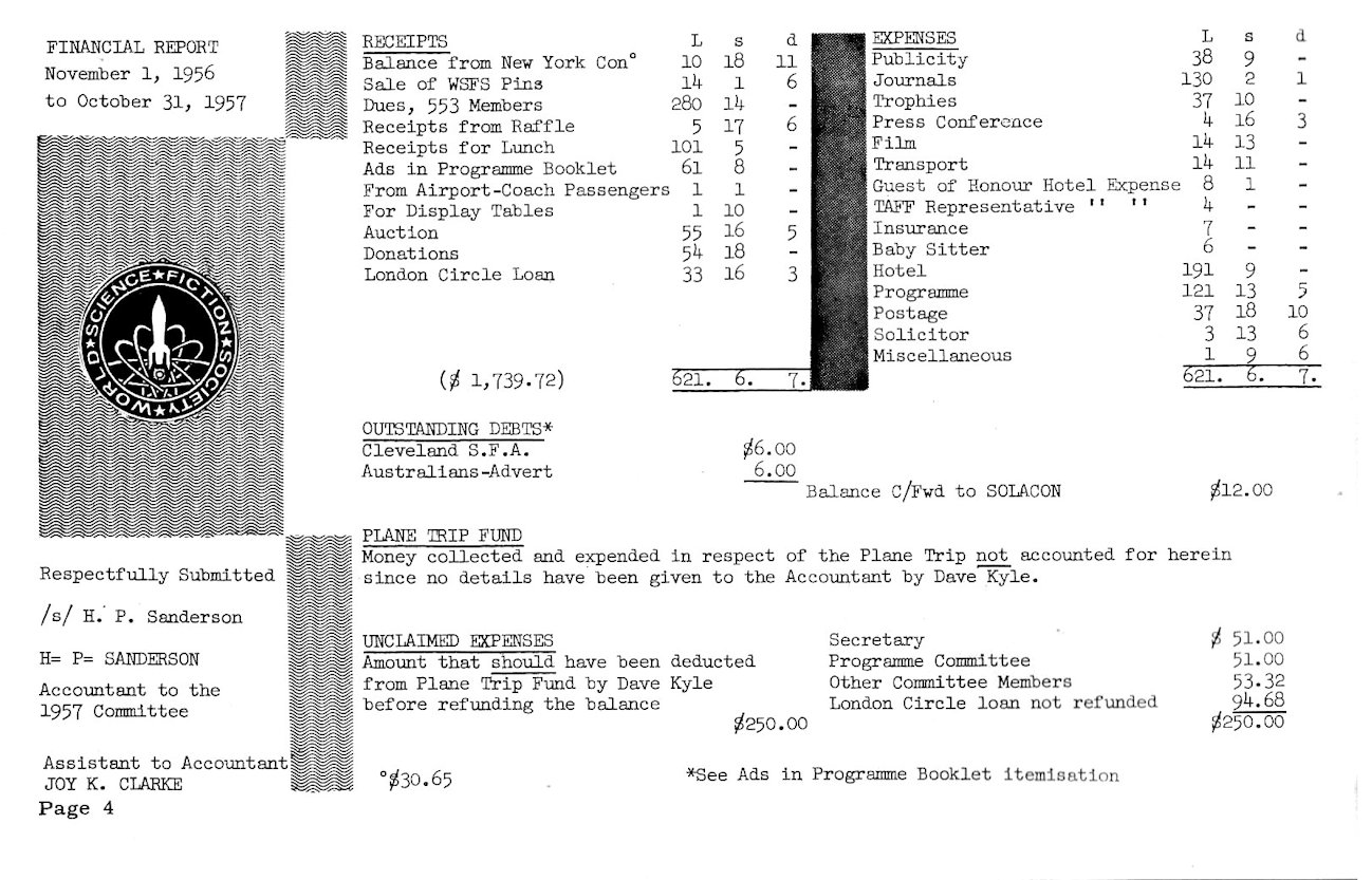 though there was a large balance to be carried over that the Solacon Committee could have used in those early months.