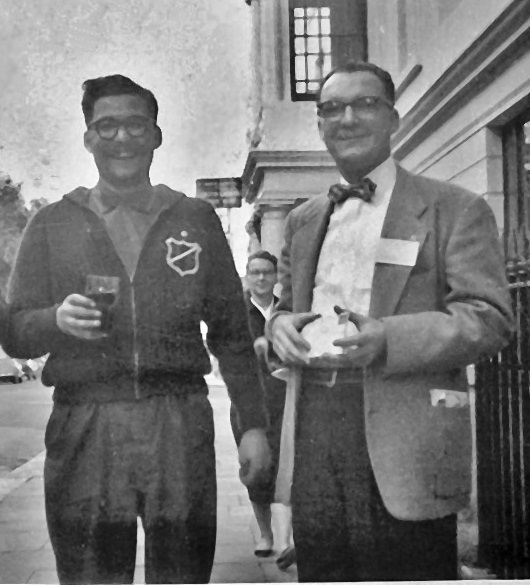 By this time, the van had arrived, and we were off for Inchmery. "We" being Joy, Sandy, the driver, and yours truly - Vince had hastened home so there would be somebody to greet us. He later confided that he had really left early so he could do some house-cleaning preparatory to the arrival of the TAFF delegate. They take TAFF delegates seriously at Inchmery - even old relic types. We were finally off, with two of us bouncing about in the back of the van on forever-shifting piles of ASTOUNDINGs. Suddenly the van started to make all sorts of weird noises, jerked spasmodically, and stopped, The driver informed us that it appeared that the van had broken down and to wait right there while he relayed this information to headquarters and that they would have a replacement van there in practically no time. Disembarking, we found ourselves somewhere uptown in London - right in front of a gigantic monument. Unfortunately, I neglected to discover to what or to whom the monument was dedicated. However, I shall always remember that imposing structure of granite as being the monument dedicated to "Where the Van Broke Down On Its Way to Inchmery". After about fifteen minutes, the driver informed us it would take longer than he had anticipated. So we proceeded to take colour photos of each other. I also walked up to the main drag - positioned myself in the middle of the street and took a photo of a smiling bobby, who condescendingly posed for me. After all, what is a trip to London without a photo of a bobby? I also got in a couple of a rather large stream called The Tems, or something like that. The replacement van finally arrived and we managed to make it to Inchmery, the abode of the Clarkes and Sanderson. The affable trio lived in a second-floor apartment, with the main room functioning as kitchen, living room, library and reproduction (of fanzines, that is) department. Science fiction magazines, tape recorders, mimeographs, and typewriters were to be found everywhere. Behind the dining table was the majority of Vince's collection, which included early WONDERs, AMAZINGs, et cetera, They were so filed that it is conceivable that if an especially heavy truck were to go down the street while someone was eating his Wheaties, he might find his bowl partially covered with old WONDER Flakies. Anyway, the room had a real fannish atmosphere and Joy, Vince and Sandy made me feel at home immediately. As a matter of fact, Sandy was so kind that he gave me his bedroom and slept on the folding bed amidst all the magazines, tape recorders and typewriters. It seemed that we had been home only a few minutes when Joy came in with a gigantic, steaming bowl of omelette, which was the most delicious omelette I had ever tasted. It seems that Joy is noted for her omelettes and, apparently, is also noted for fattening up her guests. Joy was forever placing food of some sort on the table - even to a full meal at midnight: No wonder I gained about ten pounds during my stay in England. Of course, several gallons per day of various hues of beer (light to dark) had something to do with it also. Following dinner we listened to a very lengthy tape from Bob Bloch and Dean Grennell - most of which consisted of Bloch recounting his adventures at the Clevention. Then we all said nice things to Bloch and Grennell. I remember saying that Inchmery Fandom was sercon, and had old WONDERs in their kitchen to prove it. I used (and use) the term 'sercon' to mean "serious-constructive" in the broad sense, and not in the manner of implying scorn, as defined by Tucker and Raeburn. It seems that even if 'sercon' did originally mean something else, like many other words and terms, general usage has resulted in it meaning "serious-constructive". That evening we had visitors. For this was the evening of "The Meeting at the Summit". The visitors were Walt and Madeleine Willis and Ken and Pamela Bulmer. This group, plus our quartet, made a jolly combined meeting of eight. The meeting was Ken's baby, and he had planned this so-called "Meeting at the Summit" to be somewhat different than what it finally materialized as. Ken's original plan was to have a meeting at the Loncon of himself, Walt and me. Ken had suggested that I invite several people who shared my opinions anent TAFF to attend. (He suggested Moskowitz and Ackerman.) This was so I wouldn't feel completely outnumbered in any TAFF discussion. However, plans of mice and men gang aft agley - and the meeting did not occur at the Loncon. It was obvious from the start that the meeting would be a success, as everyone was happy and glowing and in compromising moods. The various facets of TAFF were hashed over, such as who may vote, who may be nominated, and who is a fan. My fading memory indicates that Joy and Vince were rather neutral about the whole thing, with Walt and me expressing somewhat conflicting views at times. In general, Walt's definition of an S-F fan was far more rigid than mine. Walt wanted to limit the voting to fanzine fans, publishers, and/or writers - while I wanted to include anyone who was interested enough in science fiction to communicate with others in some manner, be it correspondence, attending conventions, or joining local fan clubs. A compromise was reached whereby members of fan organisations of all types would be eligible; also eligible would be anyone who had subscribed to a fanzine. I felt these concessions were fair, and was fully satisfied. Those of you who do not know Walt personally would find him to be a very enjoyable person - even though you might not agree with him at times. Walt is tall, handsome and seems to have a determined glare in his eyes, a glare which appears to give one the impression that this young man has a mission in life. His mission that evening was to keep TAFF from going to the dogs - ooops - convention fans and, I suppose, he knew that I represented a science fiction fandom much larger and more inclusive than fanzine fandom. Anyway, after 
