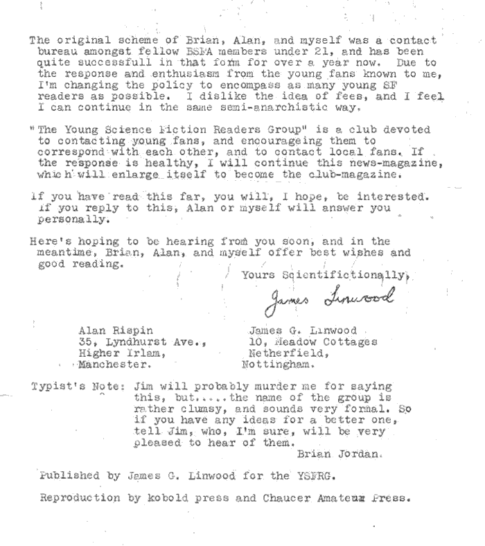 Ella Parker in front, YSFRG in rear: Jim Linwood, Alan Rispin, and Brian Jordan