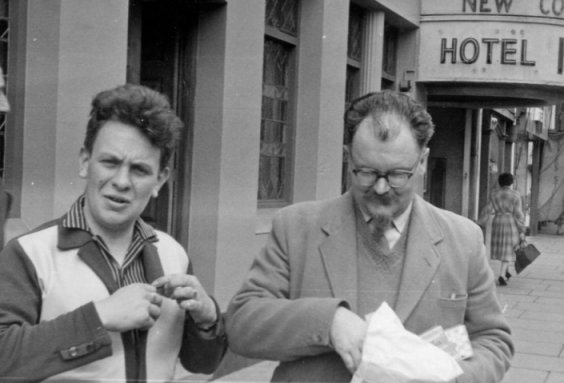 Eric Bentcliffe surprises his victim. Note Ken Slater's