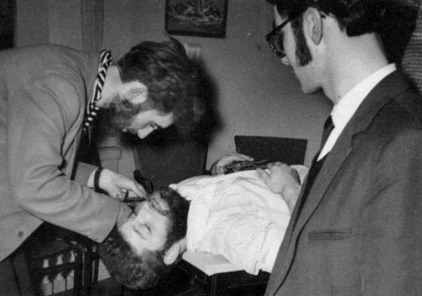 Alan Rispin removes Bruce Burn's beard (bb)