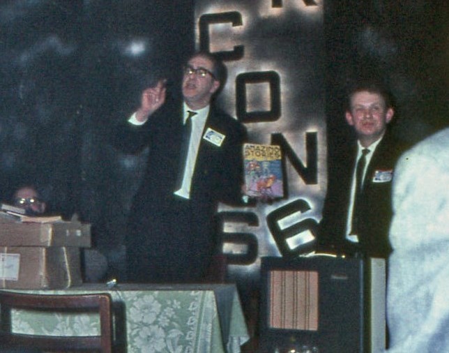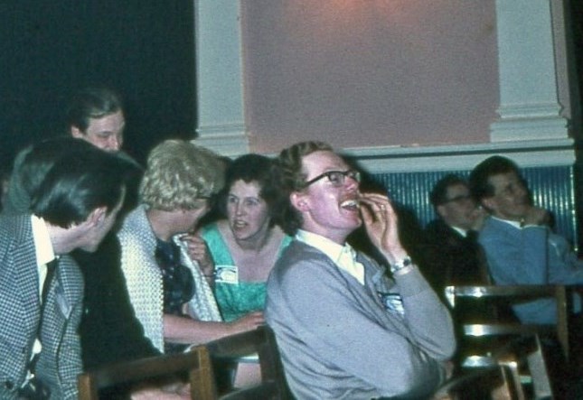 Newly-weds Harry and Marie (nee Rothwell) Nadler were presented with a bouquet and a pressure-cooker by the entire gathering. We look forward to seeing the pressure cooker featured in a forthcoming Delta film production. By now all Convention attendees were sympathetically aware that Ken Slater had lost his voice. Welcome, Ken, to a very exclusive club.
