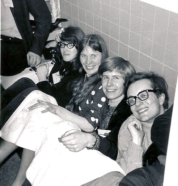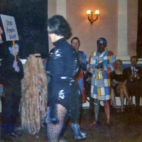 PETER WESTON: Ethel Lindsay won a prize in the Fancy Dress for her costume "Princess of Zamba," as did Charles Partington as "First BSFA Manned Satellite," after which some of us stayed up for the rest of the night to see dawn breaking over the North Sea.