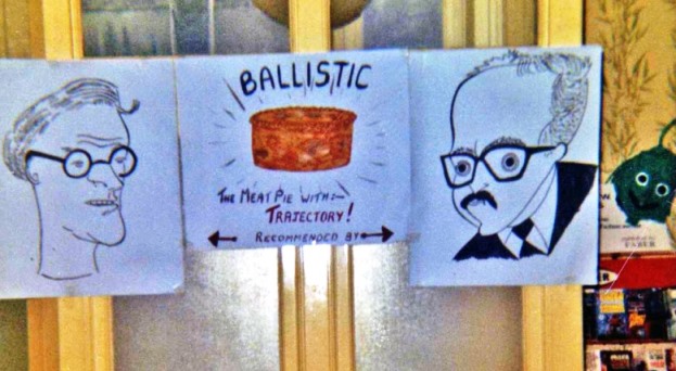 BRIAN ALDISS: We developed a fear of starvation, went into a supermarket or whatever they had posing as supermarkets in Yarmouth in those remote days, and bought up all their meat pies. Twenty-four of them, I believe. Tom Boardman was with us, and Tom agreed to keep them in his room. Harry and I had developed the meat pie idea in Harrogate, after finding that a plate of hunt-the-chicken sandwiches cost twelve bob (60p or £1.80 as it would be nowadays); ours were pork pies and I believe it was a year or two later that Brian Burgess started his own line in pterodactyl pies.