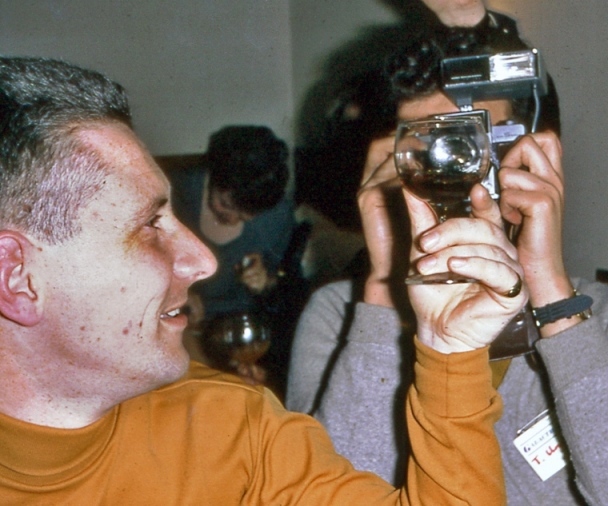 At the coffee stage the candles were lit. Keith got called on for a speech, which he made neatly and briefly, leading into the usual toasts. Ron Bennett also got a "Bon Voyage" toast, and camera flashlights began popping all over the place.
