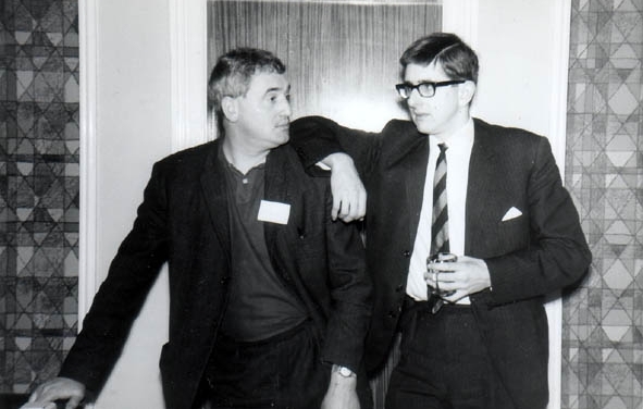 For the greater part of the evening I sat at the feet of Brian Aldiss (he'd arrived early and got a chair), drinking Judy's brandy and in a fuzzy headed sort of way trying to figure out why he, a sincere and successful sf writer, should somehow seem to me to be just slightly out of place among sf fans. As if he had read my mind he quite casually started talking about his attitude towards certain areas of his existence, and his contacts with fans, in a way that illuminated the dark parts of the mystery which I sensed within him. I wish I could remember what he said....