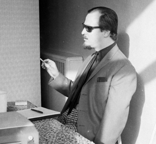 Next came a comprehensive talk by George Locke on book and magazine collecting. This appeared to be of interest to many but as I am not a collector I retired to the quiet room where Mike moaned about approaching senility and Arthur Cruttenden wandered around looking for a bottle-opener. The Mystery Guest proved to be Earl Kemp who started to give a talk on Fandom.