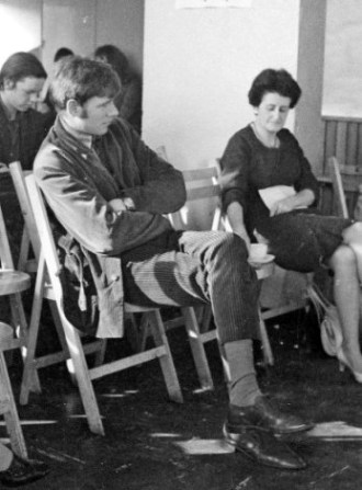 A panel next, Gerry Webb, Jim Linwood, Norman Sherlock, Dick Howett talking about Flying Saucers, a not very promising subject which became very entertaining. Gerry started with calm reason, was opposed, Mike Moorcock as an excellent Chairman managed to keep the audience under control for a short time but was soon overwhelmed. After a discussion en masse and a piece of impassioned rhetoric from Ted Tubb on the state of society, Mike brought the Panel to a disorderly but neat close.