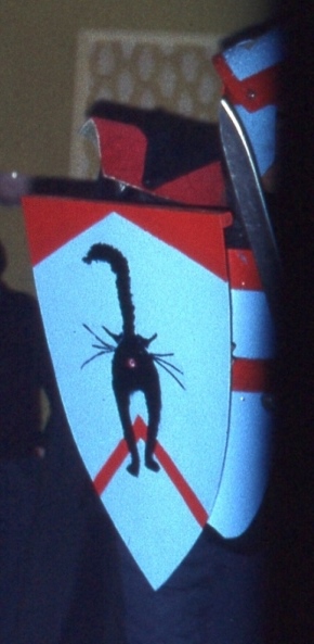 STEVE STILES: Ted Tubb and Brian Burgess engaged in a duel and proceeded to demolish about six wooden swords and three wooden shields. I still have a piece of a wooden shield, which I planned to hang over the mantle with perhaps some crossed broken swords. (The piece of broken shield fascinated the customs inspector on the way back home.) Tubb and Burgess showed much enthusiasm and prowess.