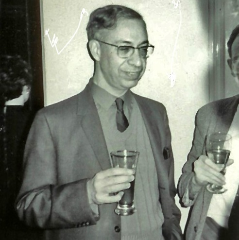 JAMES WHITE: While the dust was still settling we went up to Ella and Ethel's room for a quiet chat. It is possible to have a quiet chat with Ella when her resistance is low between cups of tea, and the service was very slow in that hotel. Don Wollheim, Bill Pettit and Ken Cheslin wandered in, and a little later Bill invited us over to his room. This turned out to be an oasis - well, four crates of beer and assorted hard stuff - of peace and quiet, cultured conversation. Bill forced beer on us and between gulps we talked about his s-f and fanzine collection; while in the corner Ella and Ethel explained American politics to Don. Don is a sort of linguistic chameleon who adopts the accent of the person he is talking to within a few seconds. He says it comes easy when talking to Bob or me because he was born in an Irish colony in Harlem or some place like that, but when Tom Schlück joined us and he started talking to Ella, Tom and Bob at the same time the effect was startling. STEVE STILES: The party for the evening was in the Liverpool Suite, with wine by Weedall and Shorrock being put to very good use. Ted (E.C.) Tubb came over to me and said hello, pausing to admire my shirt. The man seemed both sincere and sensible. I was a bit dumbfounded: I had had my second thoughts about that shirt soon after buying it and finally decided it was garish - a silk Nehru shirt with gold buttons and trimming that I had picked up in a moment of trendy madness in Times Square. I felt self-conscious about wearing it that evening but Ted seemed to like it and, more importantly, so did an attractive young woman who magically materialized on my lap with a "Oh, it's cute." I made a mental note to pick up two dozen more Nehru shirts when I got back to New York. Things were all very pleasant until her rather fierce looking husband wandered in. Beads of sweat popped up on my upper lip as I wondered how to discreetly disengage myself. At that moment the phone rang. Silence descended on the room. Eddie leaped up, bowling over his pretty girl, and headed for the phone. "Hello?" he said. "Yes, yes, I know, but..." His conversation trailed off into apologies and protests, and he hung up. "That was the management," Eddie announced. "They think we're making too much noise, and the house dick is coming up. So we're all going to be the soul of restraint until I can get rid of the twit." Consternation. Groans. Everyone sat about pretending to be respectable. There was a knock on the door. In walked the "house dick." "It was me, folks," said Dave Kyle sitting down amid boos and hisses. What a dick.