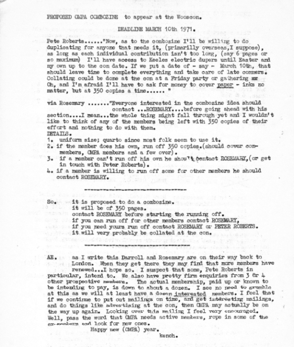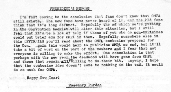 Edited by Peter Roberts, the Combozine included the following:OFF-TRAILS #62 (July 1971) - Rosemary Pardoe: