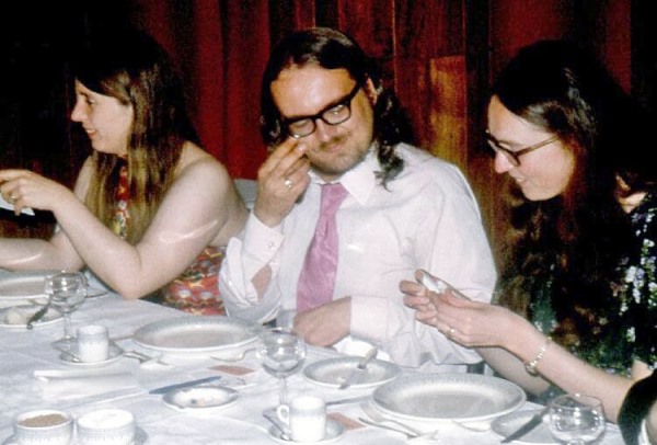 Daughter of Peter & Diane Barrow and so granddaughter of Mike Rosenblum. VERA JOHNSON: I had to skip the next panel, banquet and after-dinner speeches, as I had a booking at the Bath Folk Club, but I got back in time for the showing of "Dr. Strangelove", which I had never seen and although it was late starting and didn't finish until 3:30, I enjoyed it. LEN MOFFATT: After the Banquet, we went back to the meeting room to watch a couple more films. One was a kind of home-movie job (only with fans), showing Phil Rogers's wedding. Another was a fan-made satire about a conflict between Tubb fans and Aldiss fans, quite whacky and mad.