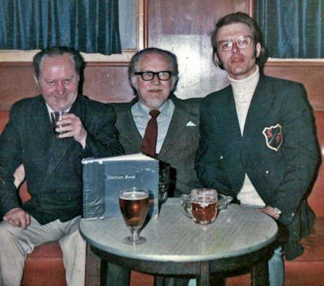 John Brunner in white check, Ken Bulmer with elbow on