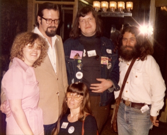 Suzy Charnas leafed through my [unbound copy], and looked up the entry on Women. She read it carefully through, while I watched nervously. Was this feminist lady going to call me a male cretin? Tonelessly she asked, "Who wrote this?" "I did," I confessed, and waited for the blow to fall. "It's really very good," she said. This compliment pleased me more than any other single event at the convention. TERRY CARR: Came time for dinner, which developed into a bit of disaster. I’d solicited recommendations of restaurants and gotten directions to one a few blocks away, but a block from the hotel a very thorough cloudburst dumped from the sky. If you wear glasses, you know the difficulty of reading street signs in a rainstorm. Naturally we got lost in the streets of Brighton and wandered for fifteen minutes feeling like the Flying Dutchman trying to find his way around Cape Horn. Soaked literally to the skin, we ducked into the first restaurant we found, where the first thing we ordered was a towel. The food (Greek) that followed was pretty good, but I'm sure the downpour hadn't helped Susan Wood's attempted recovery from her flu; she was seen only sporadically for the rest of the convention. The big party that night was in Dave Hartwell's suite, where as usual most everybody in the pro ranks gathered to blow smoke in each other's faces and try to shout above the din created by other shouters. (Dave had already retired to the hall when I arrived.) I talked with Tom Disch, whom I hadn't seen in ages, and with Ted White, Alex Panshin, Norman Spinrad, Ginjer Buchanan, John Silbersack... What? Had I travelled all the way to England to speak with a bunch of Americans? Dave told me he'd invited at least a dozen British writers but not a one had shown up; evidently the fame of Dave's con-parties hadn't yet crossed the Atlantic. ...Well, I did get to meet John Bush, the distinguished editor of Gollancz, whose appearance and demeanour matched his accomplishments. He told me the recession in publishing that's already hitting U.S. publishers hadn't yet struck in England, though the signs were on the wall, particularly in the government's cutting back on funding for libraries. The sf gravy train is slowing drastically, friends: all but the most talented and/or loud among us will have to go without truffles, at least.