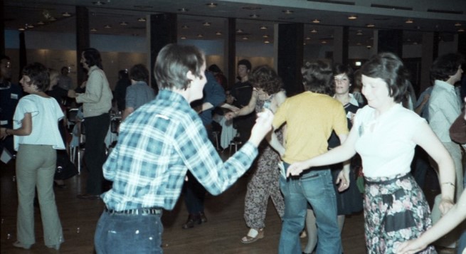 This seems to have been a genuine culture clash. Where dancing was then a tradition at our conventions (and, indeed, there had been one at our first Worldcon in 1957) it may not have been at theirs. Obviously it should not have started an hour early - I wonder why it did? - but it's entirely possible I was the first on the dance floor, as I often was back then. Here are some pics of British fans enjoying the dance: