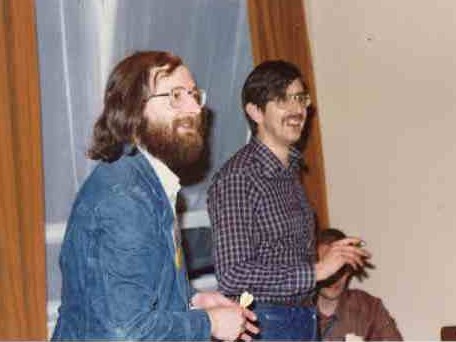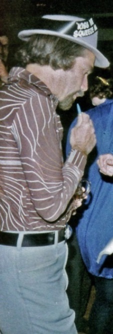 ALAN DOREY: Rich Coad knew where we were going. My drink supply was low. My balance wasn't what it could have been, and we just had to find somewhere that resembled a room party. "Gee, this place looks kinda neat." The door, already ajar, was breached like one running the four minute mile in ten seconds, and we fell on top of an untidy group of other people, each displaying a different stage of inebriation. Apart from Brian Parker, attempting to talk to a captive audience of Heady Matters, it looked well appointed-- a nice long bench along one wall, a deep pij.e carpet, and three doors at one end. Large cans and bottles of booze appeared, and soon disappeared in the approved manner. Joe Nicholas also materialized from somewhere, so he was allocated a space in one corner just in case he lapsed into unconsciousness again. "Where's the bog?" I somehow managed to splutter, realizing that my bladder was exerting far more pressure on my brain's decision-making process than was my craving for alcohol. An American female lying sprawled across the floor flapped ineffectively towards the three doors. "Great, which fucking door is it?" With a stunning display of logic, spiced with a fear of great embarrassment, I tried the first... and success. Bladder relieved, I staggered out again, only to see Joe fall out of the adjoining door with a similarly soporific smile upon his face. "There's two bogs in this room?" I said, marvelling at my powers of deduction. "Right on there chief." I then saw Mike Dickinson stagger into the third door. "Another bog?" Mike grinned as only drunks can. Bloody Hell! What an absolutely superb hotel room... lots of carpet... lots of room... three bogs... and can't even see the beds! And Christ... what bloody huge ash trays they've got in here! Even down to the instructions on how to incinerate cigarettes. Must be to help the Americans.