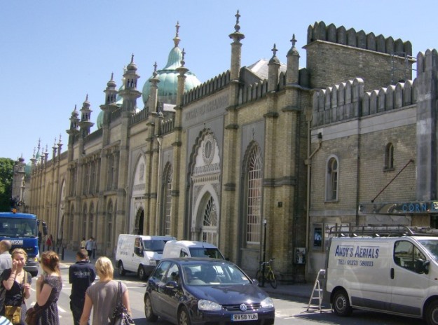 During the tour, by the way, we ran into Fritz Leiber, who introduced us to Justin Leiber and his bride. Brighton and its Royal Pavilion struck me as a Very Good Place for newlyweds to visit. (Fritz later told me that Justin, his son, had met his bride-to-be [I told you I'd forget names] while he was on vacation and writing the beginning of a science fiction novel; she was vacationing and writing a novel too, so they fell to talking, and to reading the days' outputs to each other, and...)